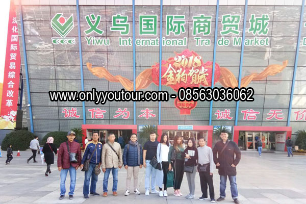 Foto bersama di depan distrik 1 Pusat Grosir Yiwu. Pusat Grosir terbesar di China dan di dunia, terdiri 5 distrik yang terbentang sepanjang 4 km.