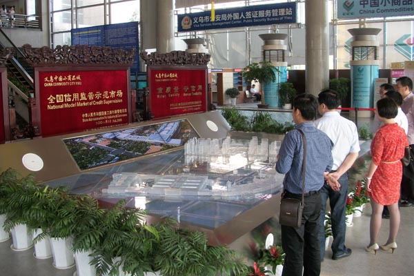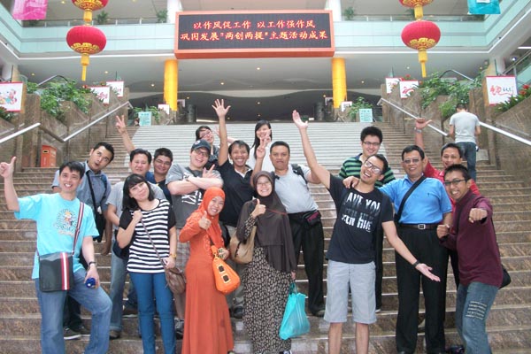 Foto bersama di lobby distrik 2 Pusat Grosir Yiwu Futian.
