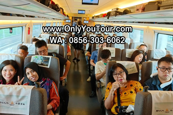 Guangzhou menuju Yiwu menggunakan Kereta Peluru Bullet Train dengan kecepatan lebih dari 300 km per jam.
