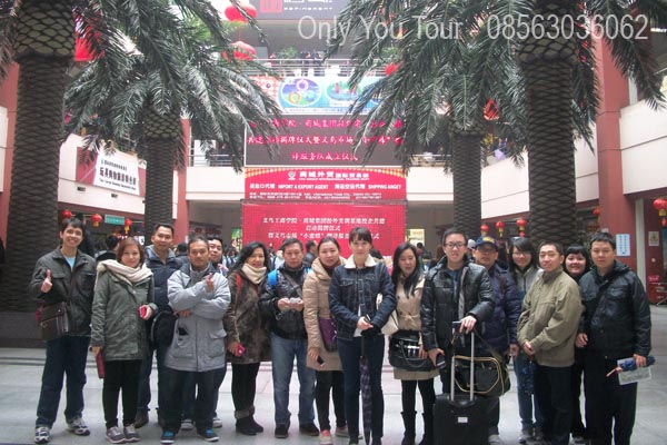 Berfoto bersama di hall distrik 1 Pusat Grosir Internasional Yiwu sebelum mulai berburu barang masing-masing.
