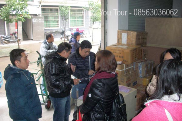 Toko mengantar barang pesanan peserta ke gudang Only You Tour, para Peserta menerima dan memeriksa barang-barang tersebut, kemudian siap dikirim dalam kontainer menuju Indonesia.